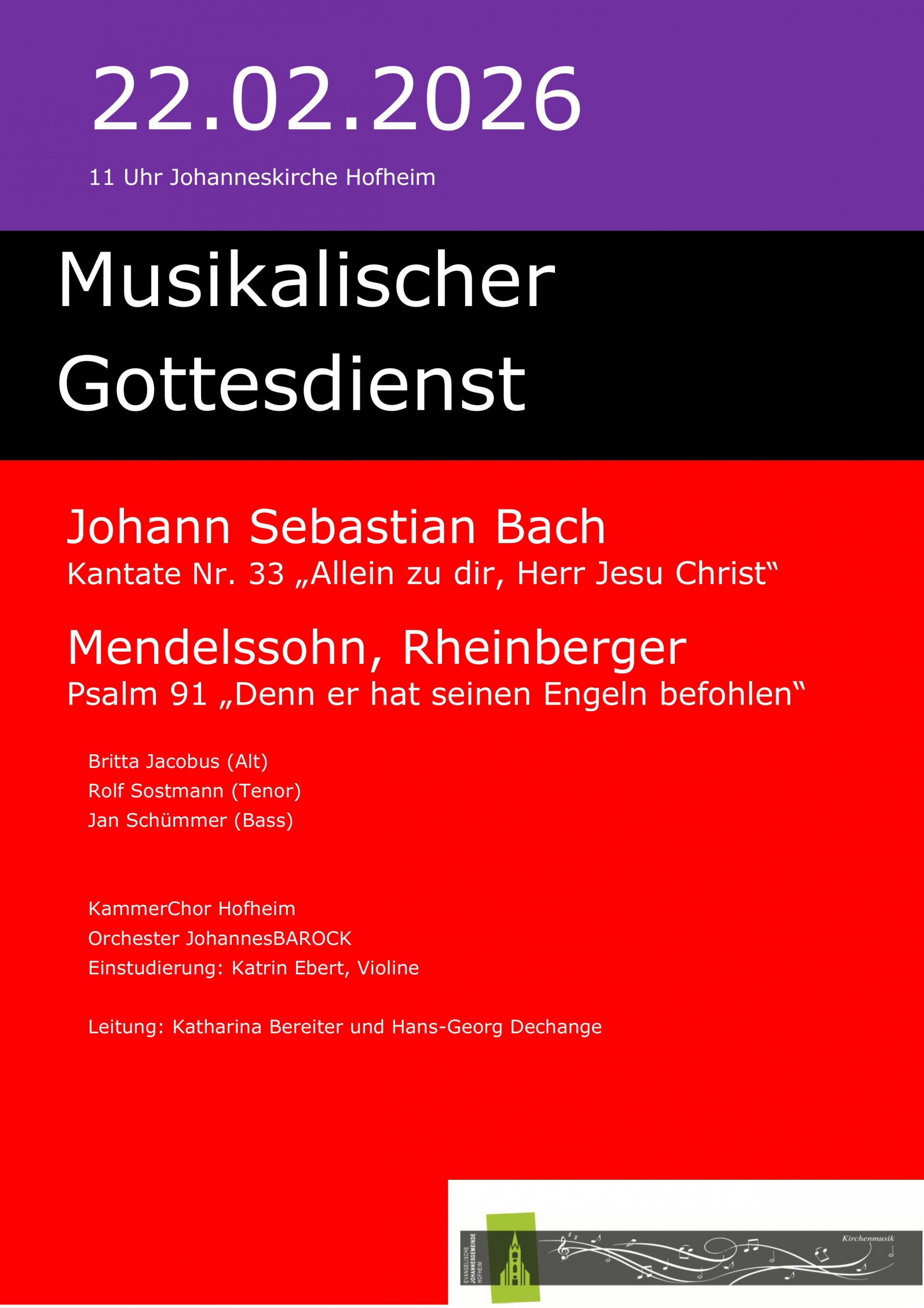 mit Bachkantate BWV 33 und Motetten von Mendelssohn, Rheinberger